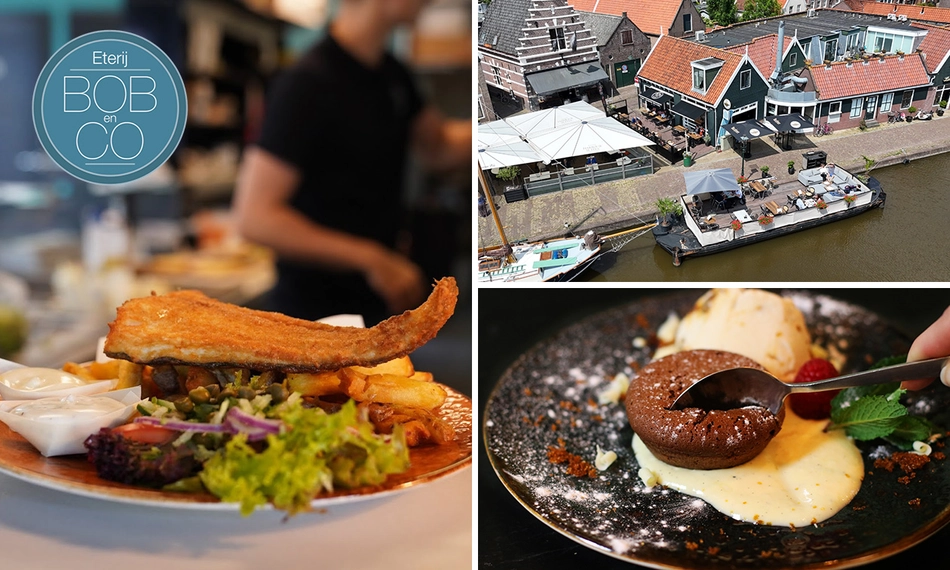 Beleef een onvergetelijke avond tafelen met een 3-gangendiner à la carte bij Eterij Bob&Co: geniet van heerlijke gerechten met fenomenaal uitzicht over het water