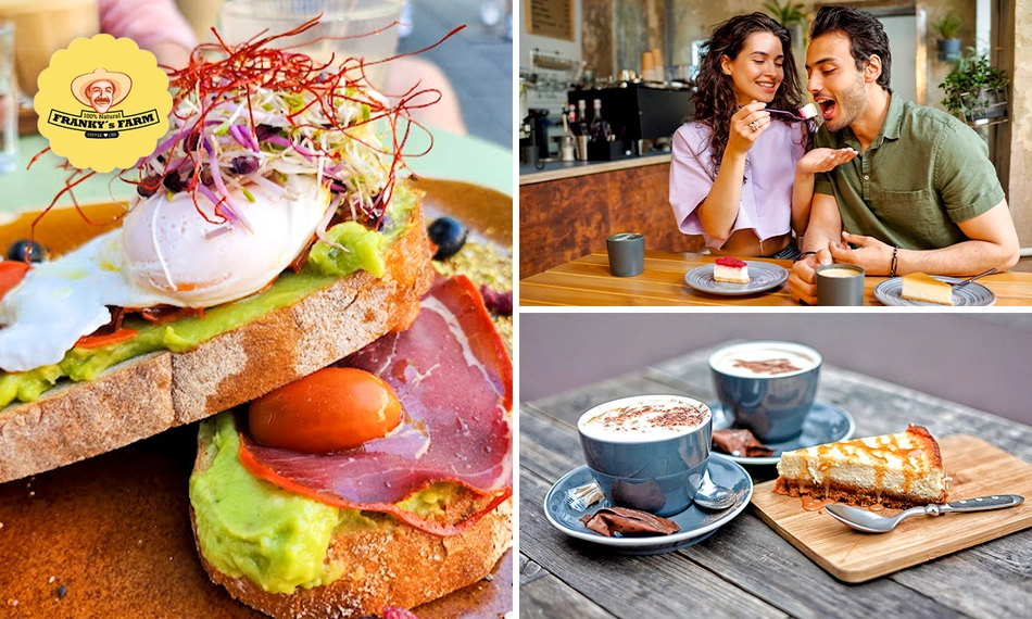 Die perfekte Mahlzeit für einen guten Start in den Tag findest Du bei Franky's Farm in Aachen. Genieße ein reichhaltiges Frühstück nach Wahl, auch inklusive einem Stück Cheesecake. Der perfekte Ort, um Dich mit Freunden, Familie oder Kollegen zu treffen!
