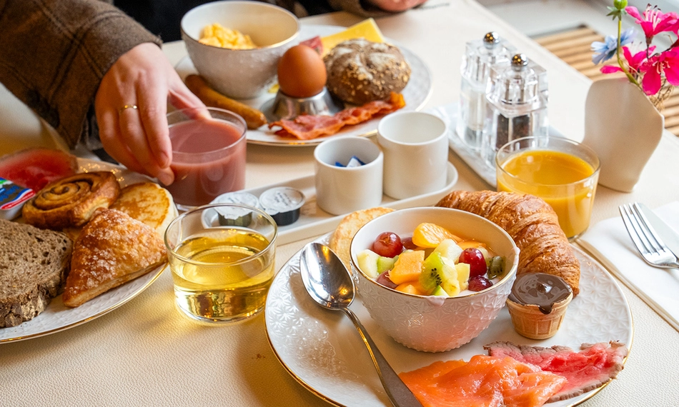 Begin jouw dag goed met een luxe ontbijtbuffet bij Grand Hotel De Draak op de markt in Bergen op Zoom: inclusief bruisend glas cava