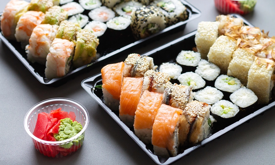 Goedgevulde sushibox van 32 of 56 stuks om af te halen bij Hawaii Poke Bowl in hartje Den Haag: geniet van heerlijke en dagverse sushi