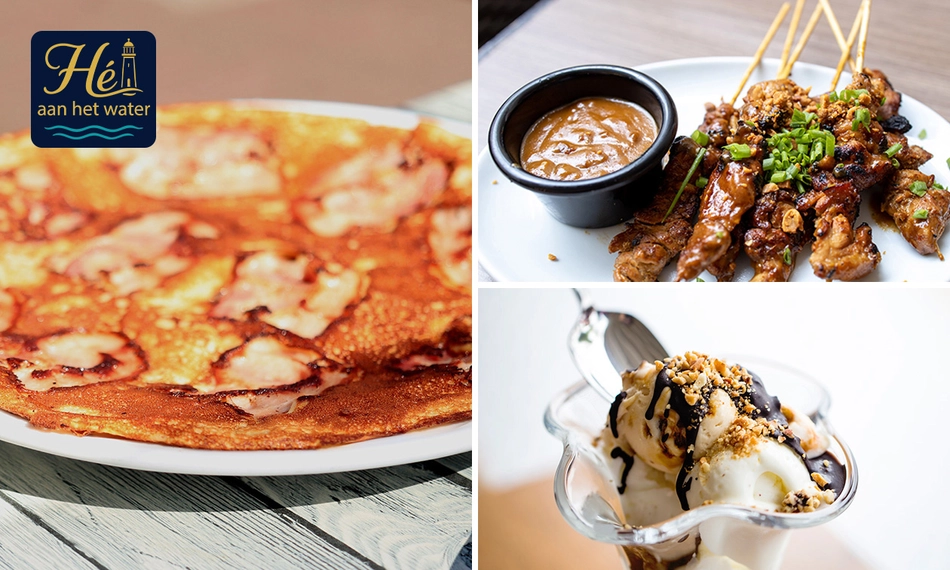 Geniet van een heerlijk 3-gangen keuzediner bij Hé aan het water: proef bijvoorbeeld risottoballetjes, een van de overheerlijke pannenkoeken en sluit af met klassieke tiramisu