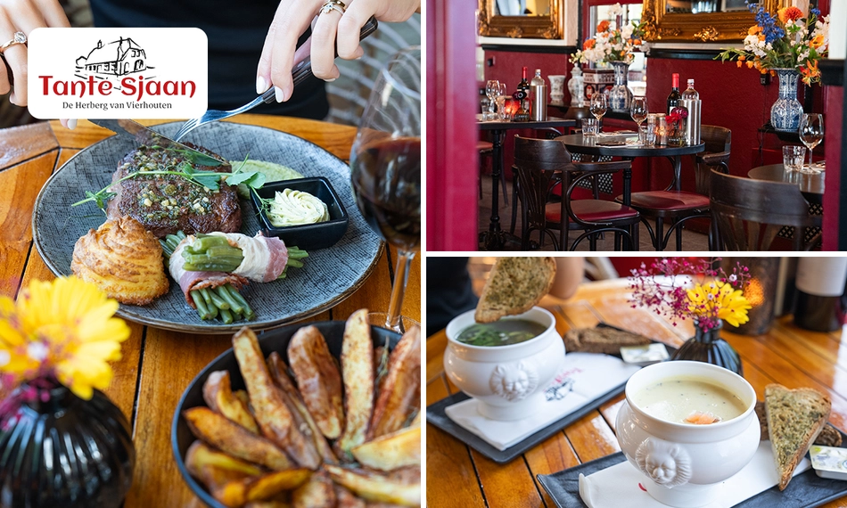Maak kennis met Herberg Tante Sjaan, een gezellige zaak in Vierhouten. Hier mag jij aanschuiven voor een heerlijk 3-gangendiner, waarbij je de keuze hebt uit alle gerechten van de kaart. Perfect als afsluiter van een dagje wandelen of fietsen op de Veluwe. Smakelijk!