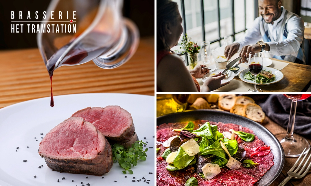 Heerlijk 3-gangendiner met vrije keuze van de kaart bij Het Tramstation: proef bijvoorbeeld rundercarpaccio, kipsaté en sluit af met chocolademousse