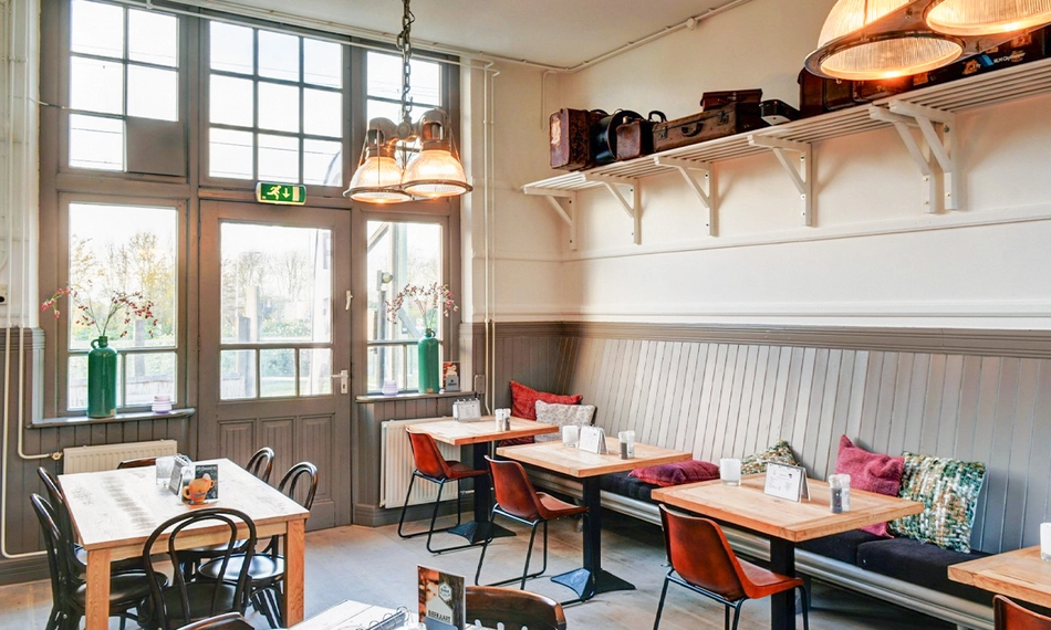 In Het Tussenstation komt het allerbeste van toen en nu samen. Waan je terug in de tijd in een stationsruimte uit begin 20e eeuw, maar dan wel in combinatie met alle gemakken van nu. Ervaar het tijdens een heerlijke 2-gangen keuzelunch. Je hebt de keuze uit allerlei smakelijke broodjes inclusief een soep als voorgerecht. Liever je dag goed beginnen met een heerlijk ontbijt? Ga dan voor de uitgebreide ontbijtplank en geniet van heerlijke broodjes, hartig en zoet beleg en andere lekkernijen. Dat wordt smullen!