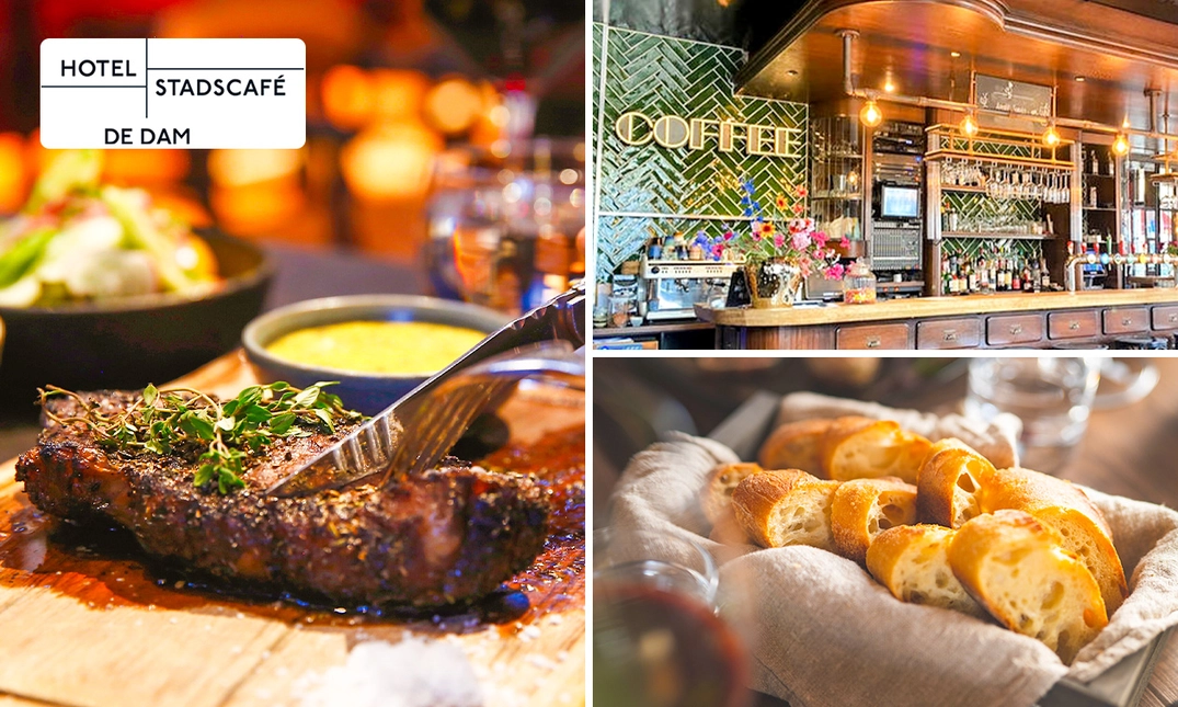 Geniet van een heerlijk 3-gangendiner bij Hotel en Stadscafé de Dam in Monnickendam: smul bijvoorbeeld van de geitenkaassalade, de damburger en het stroopwafel toetje