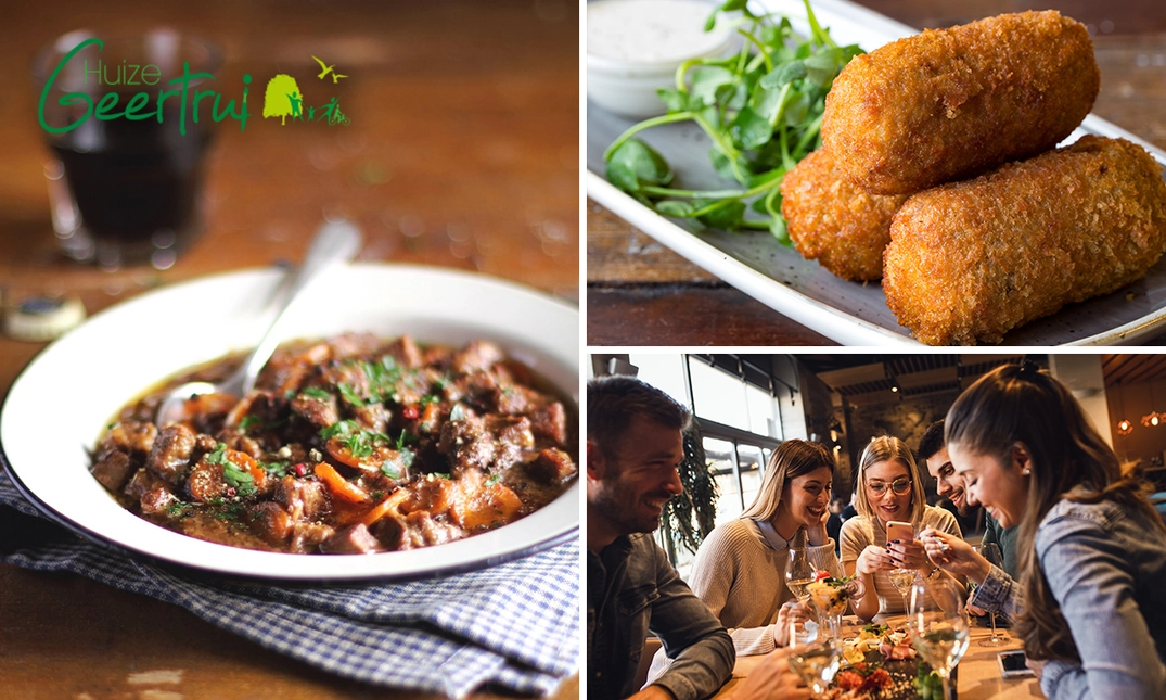Geniet van een uitgebreid 4-gangenlunch of -diner à la carte bij Huize Geertrui: met keuze uit kroketten, vol-au-vent, stoofvlees en meer