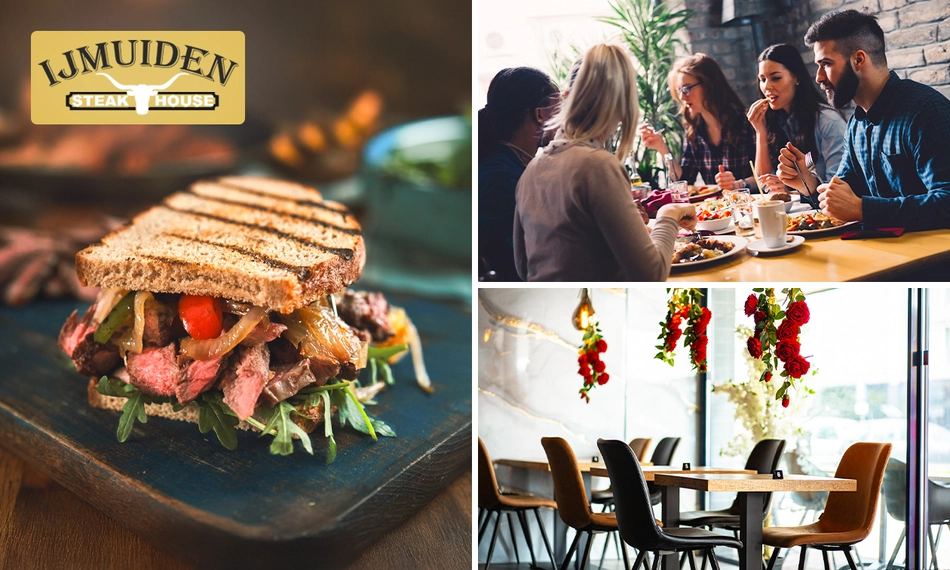 Voor een heerlijke lunch zit je goed bij IJmuiden Steakhouse! Wees welkom voor een uitgebreide 2-gangenlunch à la carte, met bij het hoofdgerecht keuze uit heerlijke broodjes. Begin bijvoorbeeld met tomatensoep, gevolgd door een steak sandwich. Ideaal voor een heerlijke middag met vrienden, familie, collega's of ander goed gezelschap. Wij wensen je vast smakelijk eten!