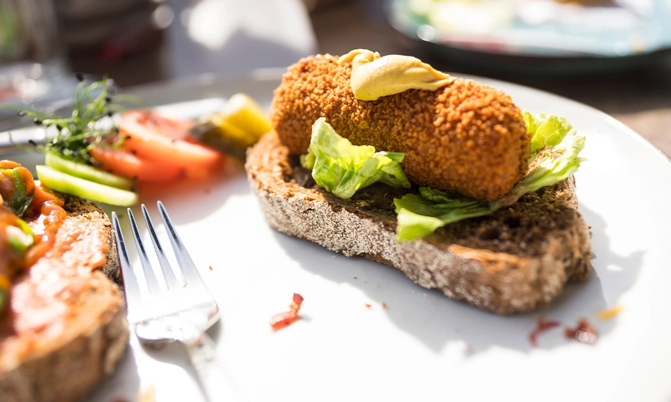 12-uurtje bij Kaatje Jans Vught: geniet van soep van de dag, een sandwich gezond en een vleeskroket