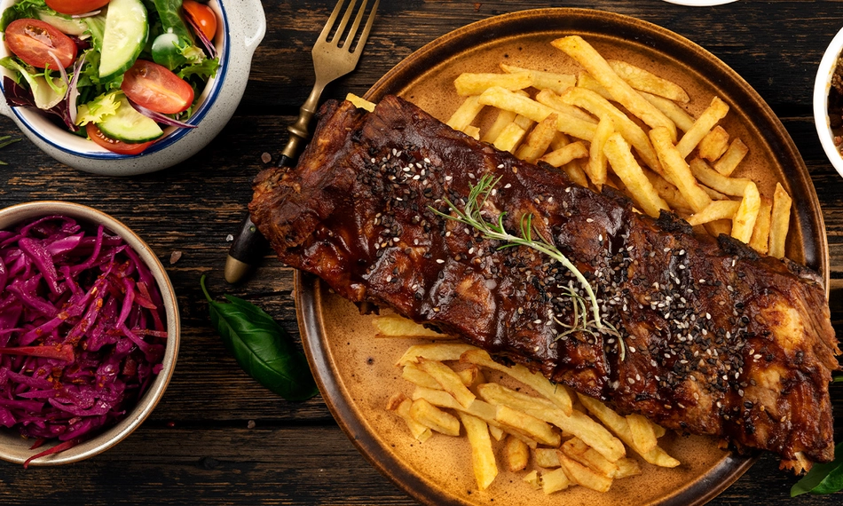 Geniet onbeperkt van heerlijke spareribs bij Kaffee Katoen in het centrum van Geldrop: inclusief frisse salade en knapperige frietjes