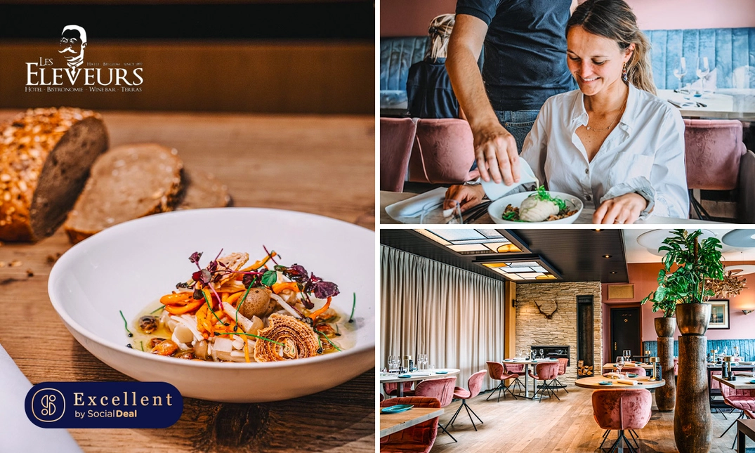 Laat je in de watten leggen met een 3-gangenlunch of 4-gangenlunch of -diner van de chef bij Les Eleveurs in Halle, bekroond met een score van 14/20 in de Gault Millau! Je wordt hartelijk ontvangen met een aperitief en krijgt vervolgens verrassende gerechten voorgeschoteld. Les Eleveurs is ideaal voor een avond uit met vrienden, collega's, familie of ander goed gezelschap. Wij wensen je alvast een hele fijne middag of avond!