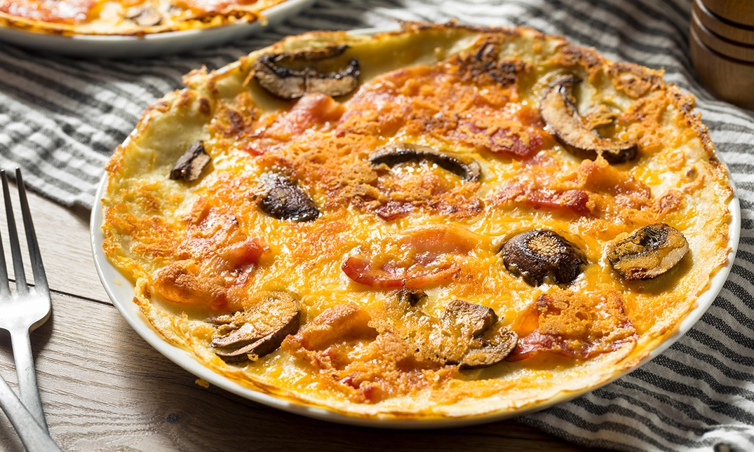 met spek, kaas, ui, champignons en paprika - Spicy Italian