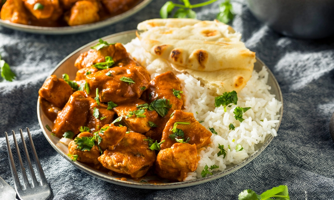gemarineerde stukjes kipfilet in een romige saus van boter en Indiase kruiden