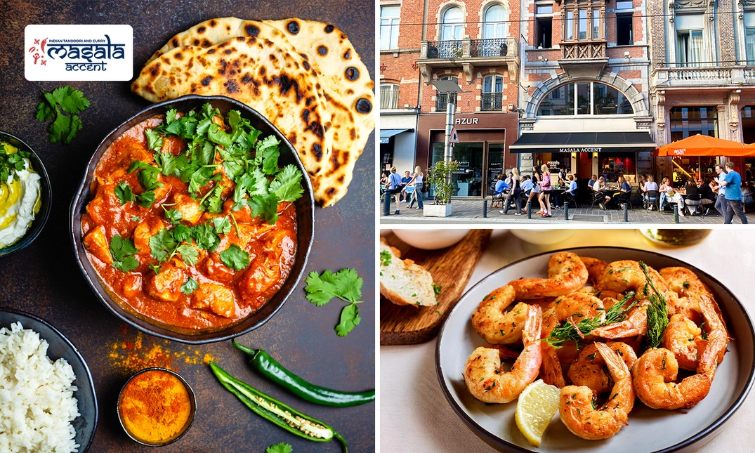 Geniet van een Indiase 2-gangen keuzelunch bij Masala Accent: of proef de rijke smaken in een 2-gangen keuzediner voor dine-in of afhaal