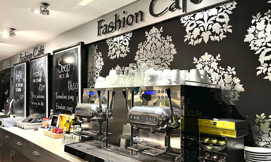 In de ModeMall vind je op de bovenste etage een sfeervol Fashion Café waar je in een relaxte sfeer geniet van een kop koffie met iets lekkers, een heerlijke lunch, een high tea, een drankje met een borrelplank of een diner.
