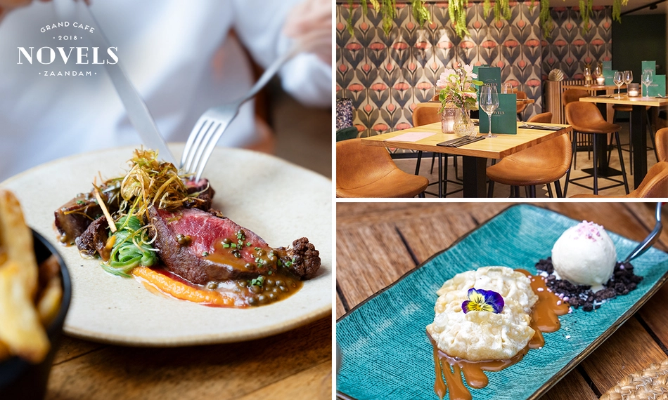 Wil je in een relaxte en trendy omgeving genieten van heel veel bijzonders? Bij Novels in hartje Zaandam geniet je van een overheerlijk 3-gangen keuzediner. Novels is 7 dagen per week geopend én bevindt zich in het stadshart van Zaandam, dus combineer je culinaire belevenis ook met een fijn dagje struinen door de stad. Alvast smakelijk eten!