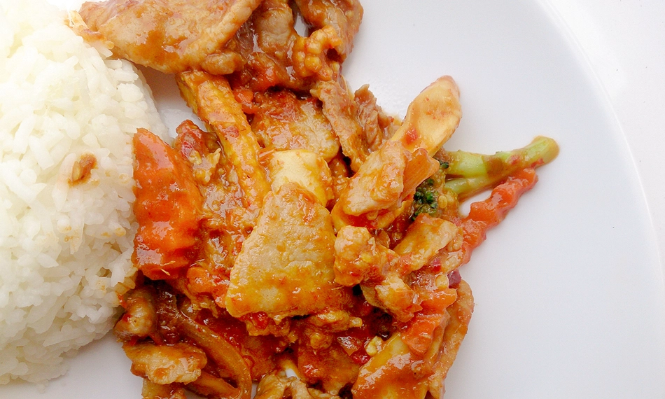 kip in teriyakisaus met witte rijst