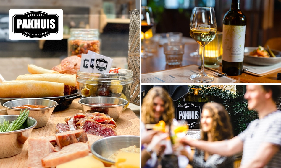 Een gezellige borrel met een borrelplank inclusief een glas huiswijn, bier of fris bij Pakhuis Leiden in het hartje van de stad: genieten in een monumentaal pand