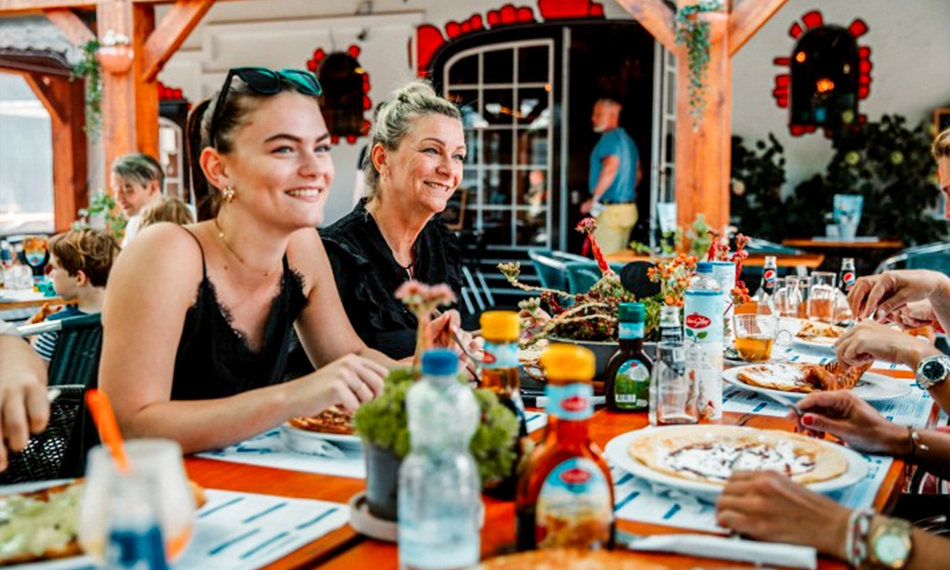 Beleef een heerlijke avond bij Pannenkoekenboerderij Grietje! Op deze leuke locatie in Scherpenzeel kan jong én oud zich vermaken. In het sfeervolle restaurant krijg je een heerlijk 3-gangen keuzediner met als hoofdgerecht een lekkere pannenkoek met 2 toppings naar keuze. Perfect voor een gezellige avond uit met het hele gezin! Wij wensen je alvast eet smakelijk!