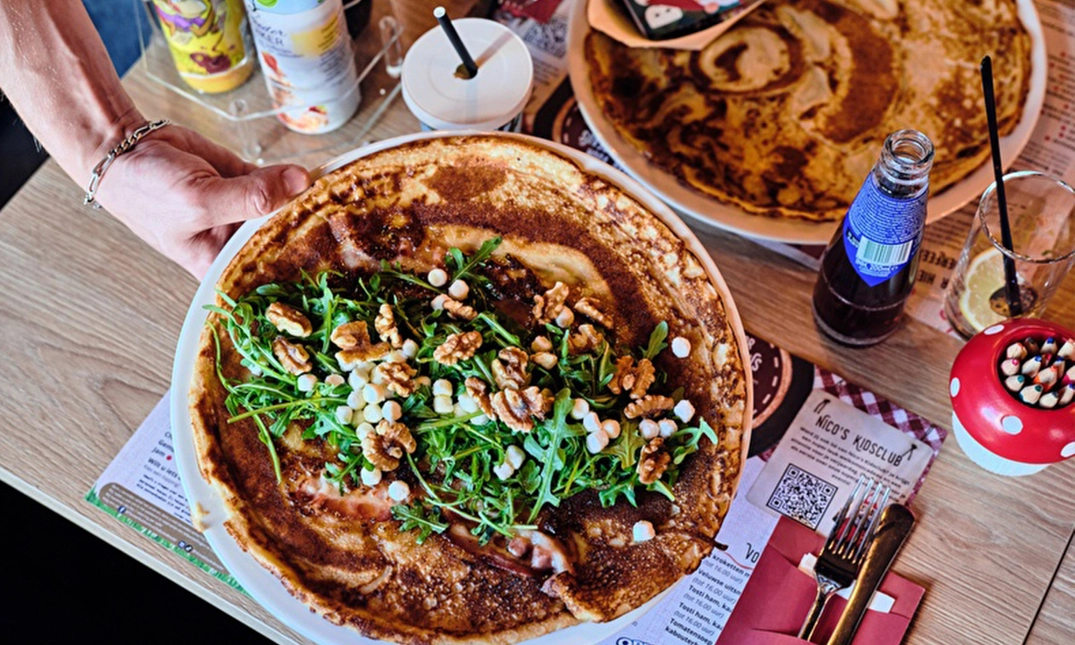 • Kies bijvoorbeeld voor een ambachtelijke pannenkoek met 3 toppings