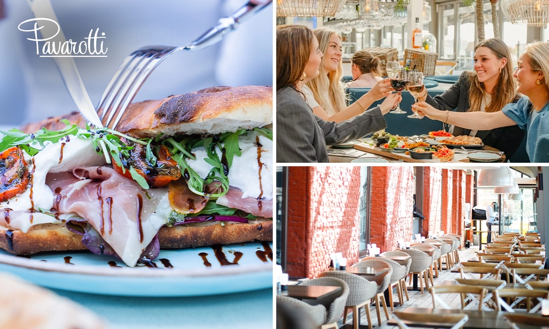 Heb jij zin in een heerlijke Italiaanse lunch? Dan ben je bij Pavarotti Delft aan het juiste adres! Hier geniet je van een 12-uurtje of 2-gangen keuzelunch in Italiaanse sferen. Proef bijvoorbeeld de zuppa di pomodoro en focaccia pollo. Meer een toetjesliefhebber? Dan is de rustichella mozzarella en de romige tiramisu misschien iets voor jou. Neem je favoriete gezelschap mee en ervaar de gezellige ambiance!