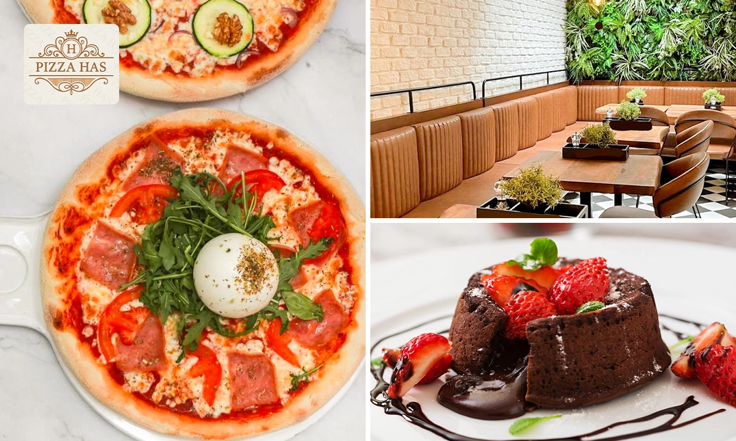 Verwen jezelf met een 2-gangen keuzediner of -lunch bij Pizza Has om af te halen of voor dine-in: smul van een pizza naar keuze, een dessert en een verfrissend drankje