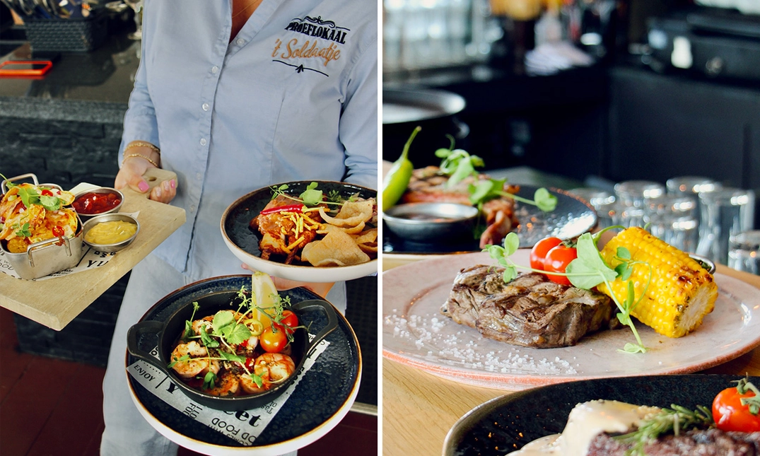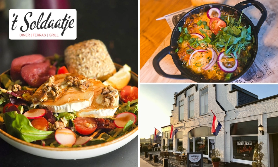 Bij Proeflokaal ’t Soldaatje geniet je van een sfeervol 3-gangendiner à la carte. Laat je verrassen door smaakvolle gerechten, zoals malse yakitori-spiesjes of gebakken gamba’s. Vooraf geniet je van brood met dips en je sluit je diner af met een zoete verleiding, bijvoorbeeld een cinnamon bun of chocolade moulleux. Dat is nog eens gezellig tafelen in een warme sfeer. Eet smakelijk!