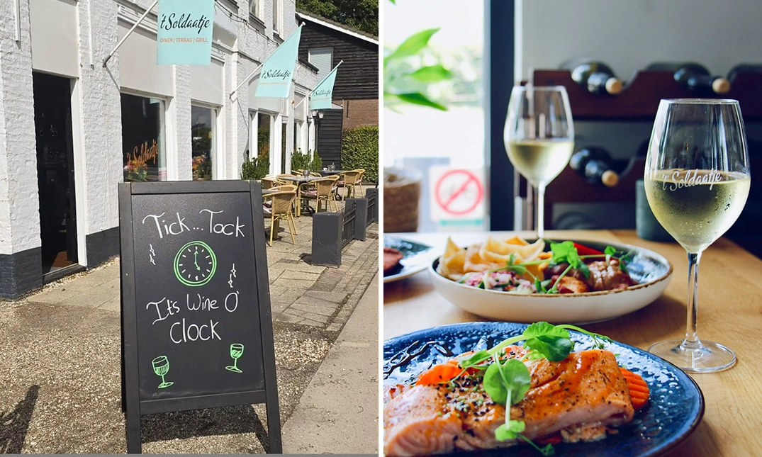 Op het ruime tuinterras zit je uit de wind en geniet je volop van het mooie weer. De menukaart biedt voor ieder wat wils, van een klassieke uiensoep tot malse spareribs. Bij 't Soldaatje draait het om genieten, gezellig samen zijn en je thuis voelen.