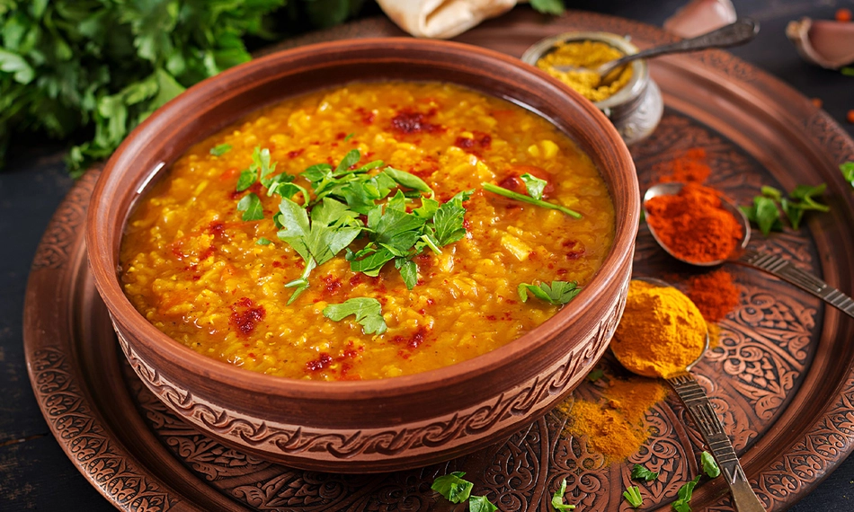 smakelijke linzensoep uit het noorden van India, zacht van smaak - Mulligatwont soep (vegan)