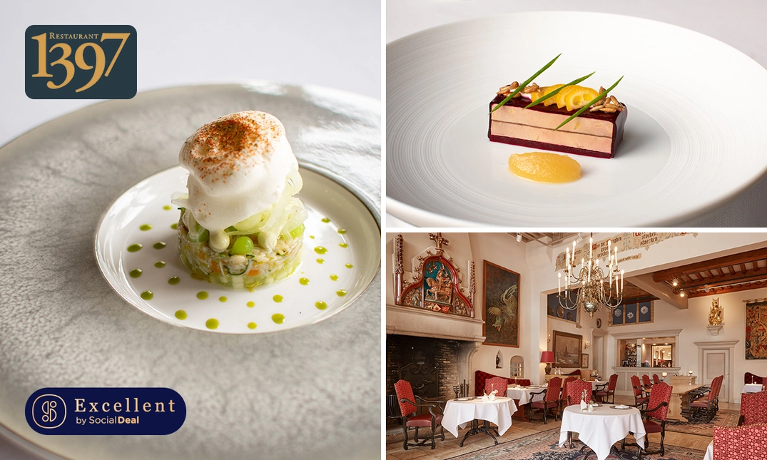Laat je verwennen met een 3- of 4-gangenlunch van de chef of 4-gangen zondagslunch bij Restaurant 1397: een middag vol culinaire verrassingen, smaakvolle creaties en gastvrijheid op topniveau
