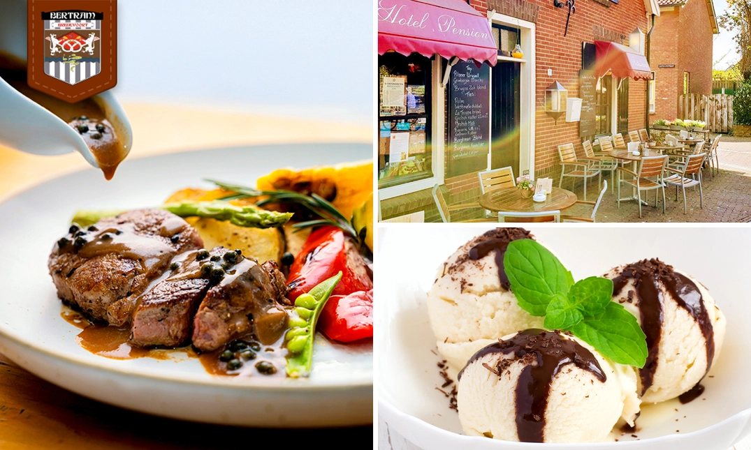 Geniet van de smakelijke selectie gerechten met een 3-gangendiner van de chef bij Restaurant Bertram: met keuze uit vlees, vis of vega is er voor ieder wat wils
