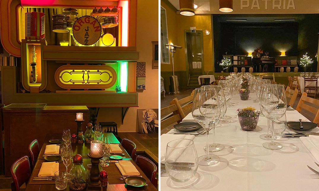 Het pand van Restaurant Café Modern was eerst een dorpsschool. Om dat niet te vergeten is het restaurant sfeervol en gezellig ingericht met een knipoog naar vervlogen tijden. Waan je even in de jaren '50 met Marilyn Monroe, Fred Astaire en Grace Kelly. Ook het originele Decap-orgel is nog geheel intact. Ervaar de gezellige ambiance en geniet van een zalig Belgisch speciaalbiertje met een lekkere hap erbij.