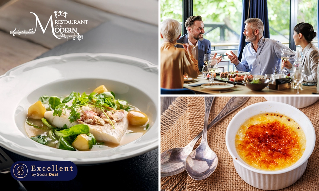 Geniet van een heerlijke 3-gangen keuzelunch of 4- of 5-gangen keuzediner bij Restaurant Café Modern: verwen je smaakpapillen met verrukkelijke gerechten