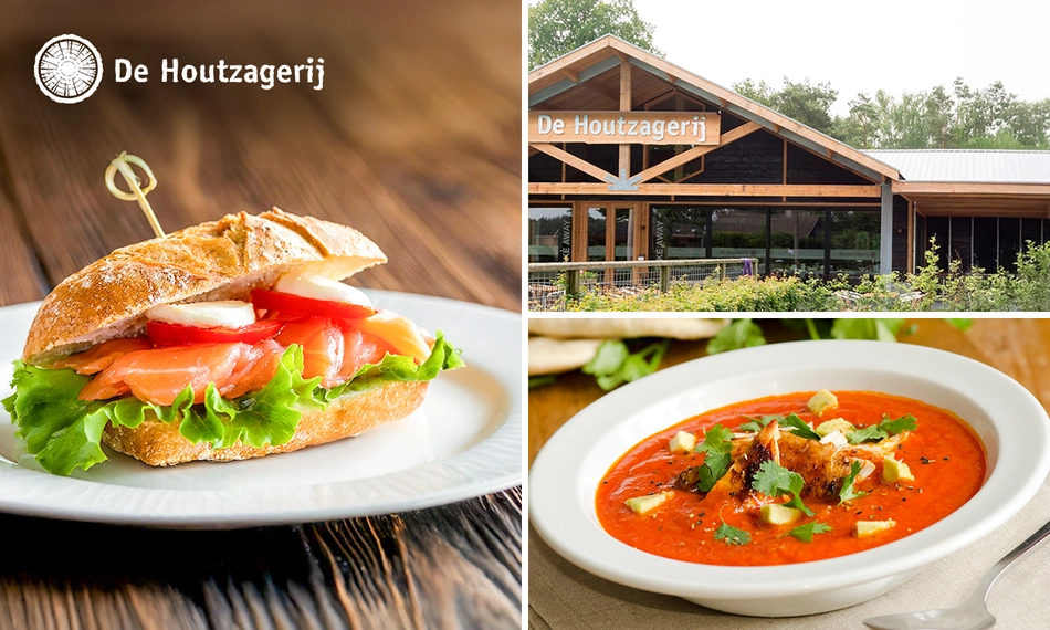 Geniet van een heerlijke 2-gangen keuzelunch bij Restaurant De Houtzagerij, gelegen in een groene en rustgevende omgeving. In deze sfeervolle en warme ontmoetingsplek schuif je aan voor een smaakvolle lunch, waarbij je start met een soep van de chef en vervolgens kiest uit een ruim aanbod aan broodjes en uitsmijters. De Houtzagerij staat bekend om haar eerlijke gerechten, gastvrije service en ontspannen sfeer, waardoor het de ideale plek is voor een gezellige lunch met familie, vrienden of collega’s. Combineer je lunch met een mooie wandeling in de natuur of laat de kinderen zich vermaken in de speelruimtes voor een compleet en zorgeloos uitje.