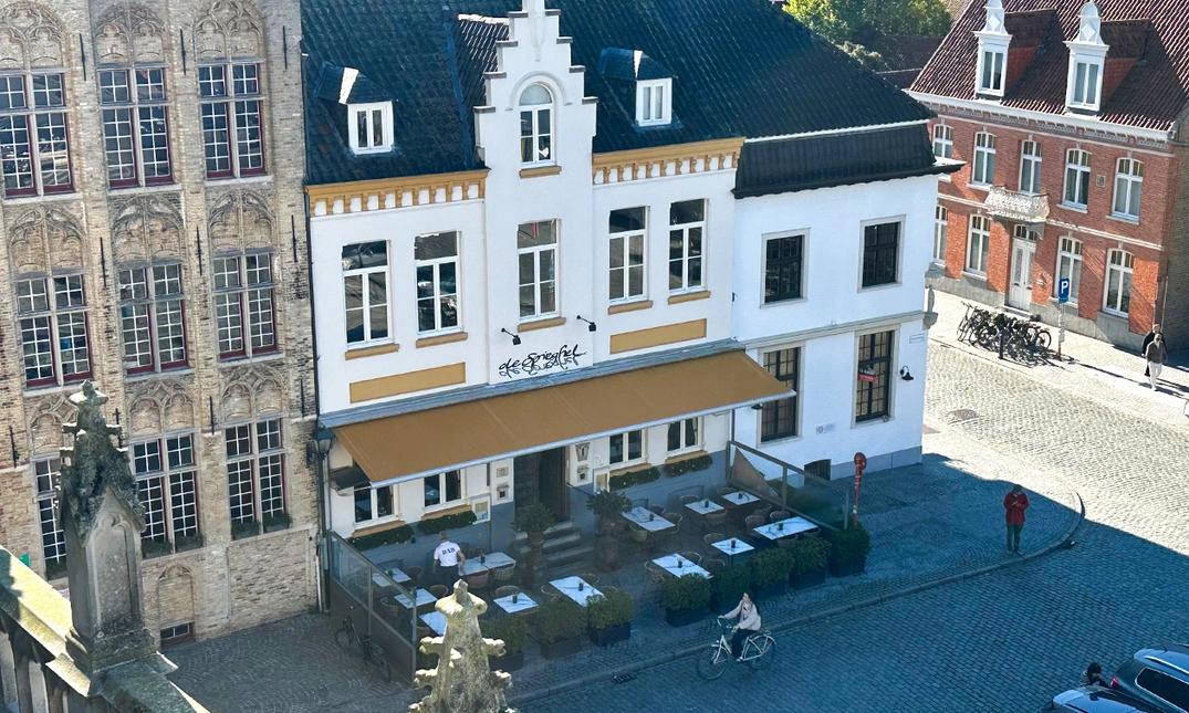 Bij Restaurant De Spieghel geniet je van een smakelijke maaltijd op een prachtige locatie: de historische markt van Damme! In de winter warm je heerlijk op bij de openhaard en in de zomer neem je plaats op het zonnige terras van het 17e-eeuwse pand. Tijdens een heerlijke lunch, een zalig diner of een gezellige borrel geniet je van prachtig uitzicht op het stadhuis en de ooievaars.