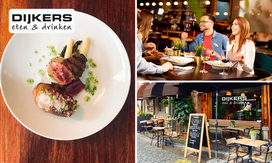 Laat je in de watten leggen bij Restaurant Dijkers! Wees welkom voor een 3-gangendiner à la carte, vol gerechten die met passie voor je worden bereid. Of je nou een vleesliefhebber bent, liever vis eet of op de vegetarische tour bent, er is voor ieder wat wils. Neem familie, vrienden, collega's of ander goed gezelschap mee, of trakteer jezelf op verrukkelijke gerechten. Wij wensen je hoe dan ook een heerlijke avond uit!