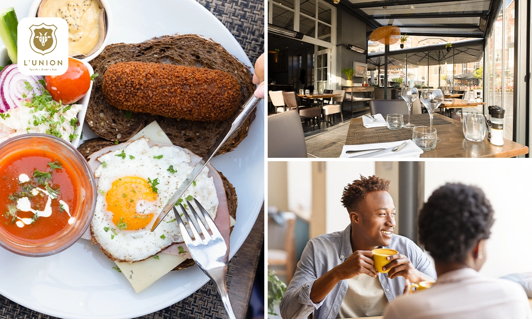 Aan de Markt van Roermond vind je Restaurant l'Union. Je geniet hier van een uitgebreide lunch met een 12-uurtje met soep, brood met een kroket en brood met ham, kaas en een eitje. Perfect als tussenstop tijdens een dagje shoppen!