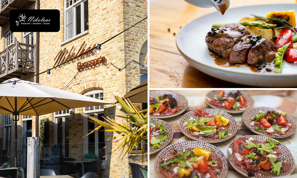 Genieten met een grote G doe je bij Restaurant Nikolaas, in hartje Diksmuide! In deze sfeervolle zaak word je hartelijk verwelkomd door het jonge, enthousiaste team van Milan en Manon. Schuif aan en laat je verwennen met een verfijnd 3-gangen keuzediner of -lunch inclusief warm hapje vooraf. Van klassiekers als garnaalkroketten en steak met saus naar keuze tot verrassende gerechten, zoals een mini-bouillabaisse of een versgemalen steaktartaar: elk bord is een streling voor je smaakpapillen. Sluit af met een dessert van de chef en beleef een avond vol gezelligheid, smaak en vakantiegevoel!