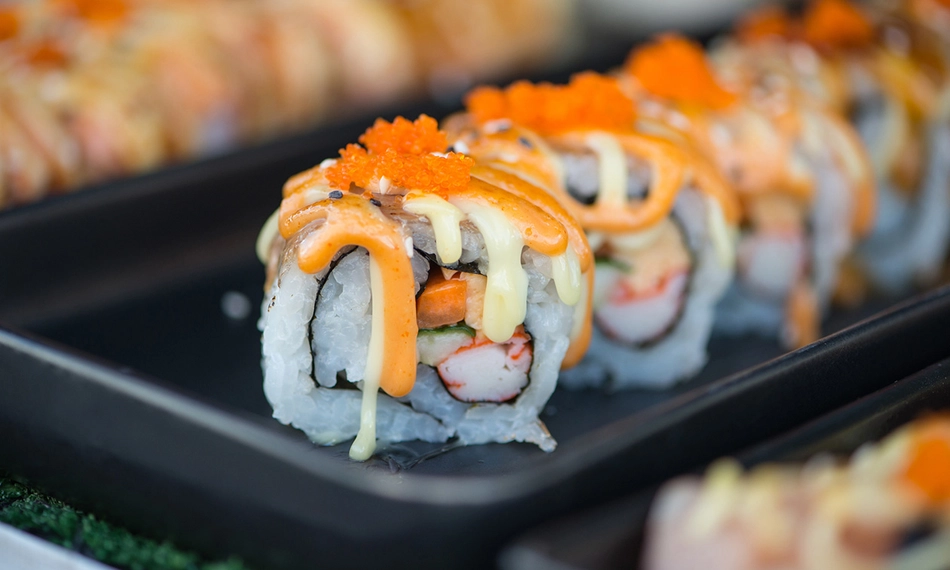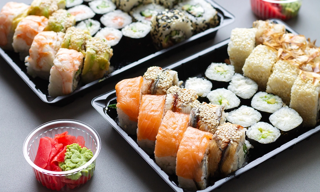 Heerlijke doos van 54 sushi's en 6 loempia's om af te halen bij Sakura: geniet van een heerlijk Aziatisch diner in het comfort van je eigen huis