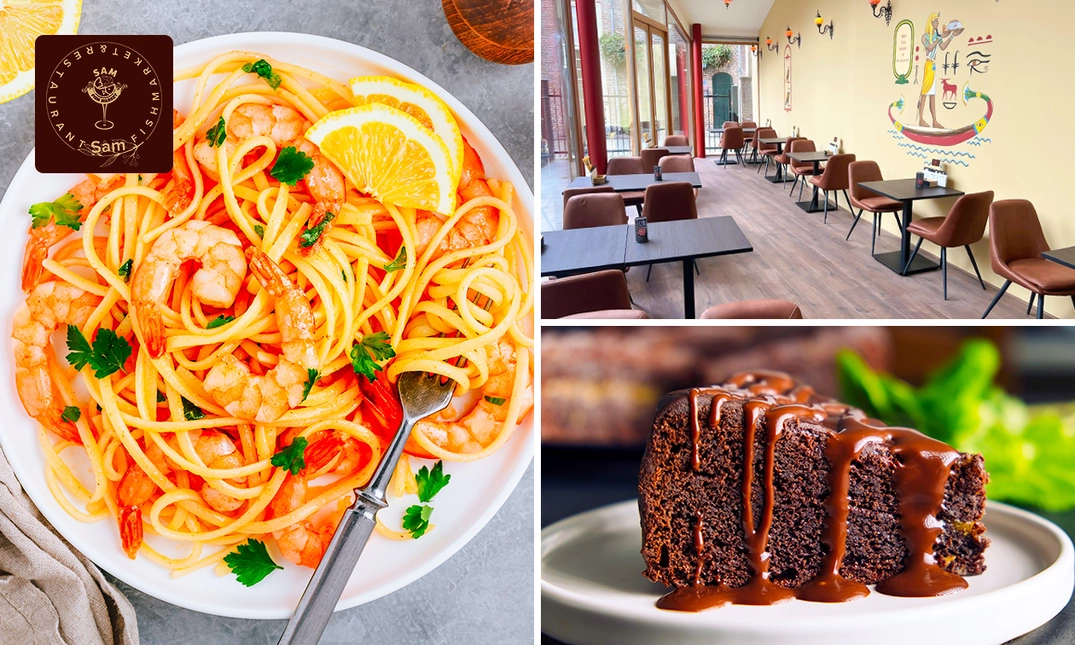 2-gangen keuzediner bij Sam Fish Market in hartje Zutphen: geniet van een heerlijk hoofd- en nagerecht naar keuze, zoals pasta met zeevruchten en een dame blanche