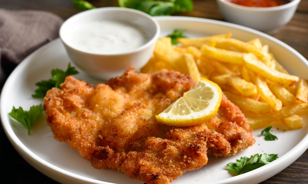 Alle hoofdgerechten worden geserveerd met friet en salade