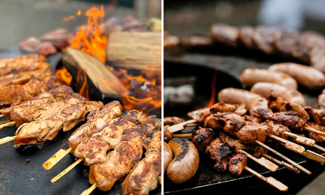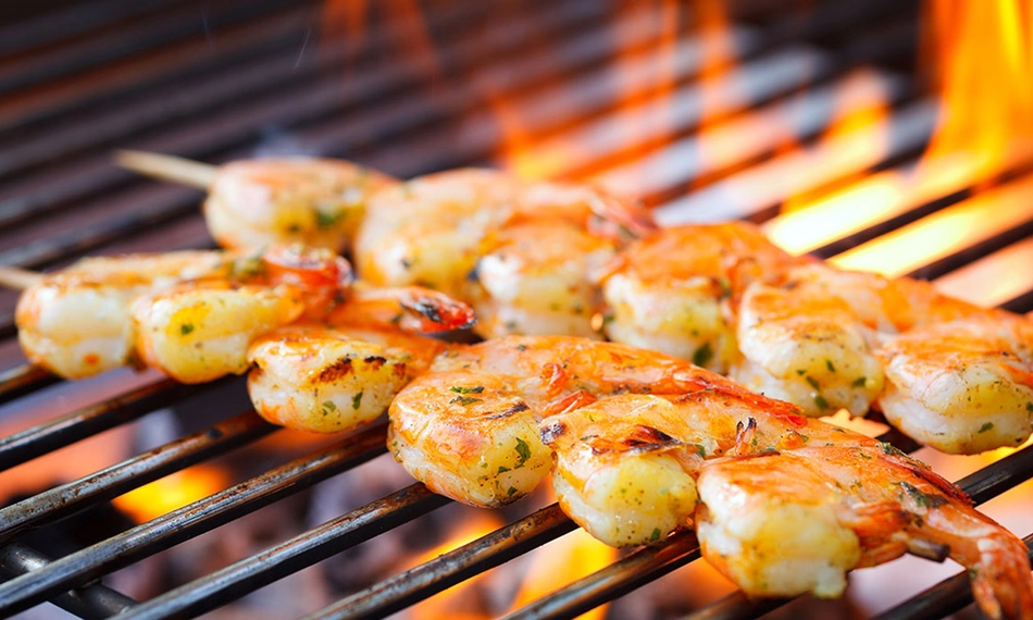 Compleet barbecuepakket bij jou thuisbezorgd van Star Catering: met een scampispies, buikspek, salades, focaccia en nog veel meer