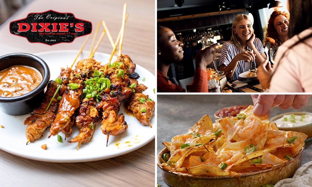 Heb jij zin in een avond vol culinaire verwennerij? Dan moet je bij Steakhouse Dixie's zijn! In dit sfeervolle restaurant geniet je van een verrukkelijk 3-gangendiner met vrije keuze van de kaart. De Amerikaanse menukaart en het authentieke Amerikaanse interieur geven je even het gevoel dat je in Amerika bent. Smul van een sappige burger, kipsaté of iets anders lekkers. Er is voor ieder wat wils. Wij wensen je alvast smakelijk eten!