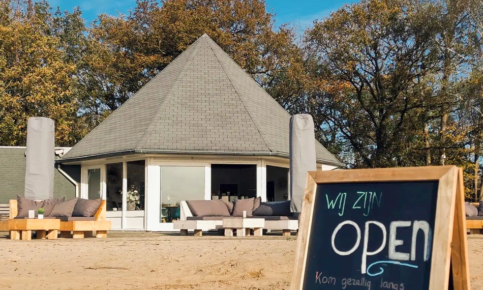 Geniet van een lekker stuk gebak en drankje naar keuze bij Strandpaviljoen 't Hilgelo in Winterswijk: of ga voor een heerlijke lunch met drankje naar keuze