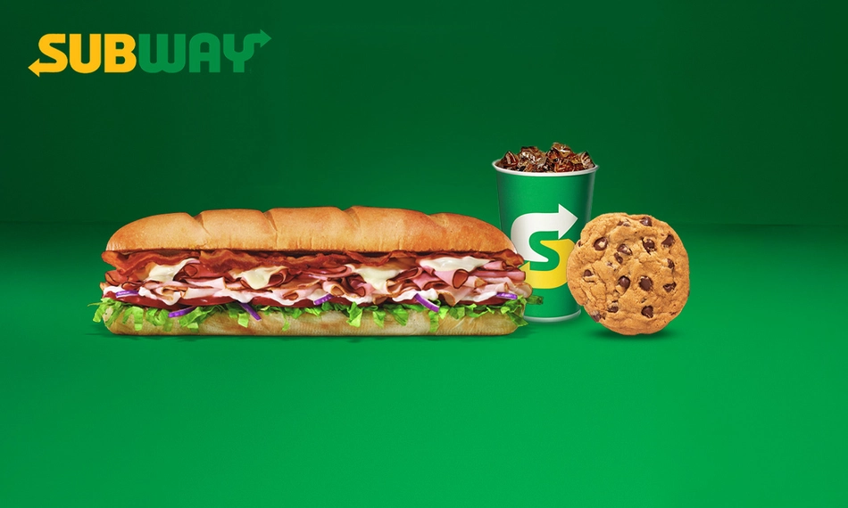 Compleet Sub-menu om af te halen bij Subway Stein: geniet van een Sub naar keuze van 15 of 30 cm, een cookie of een zakje chips én 0,5L fris naar keuze