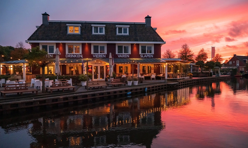 't Schippershuis is een hotel en restaurant, gelegen in het hart van Terherne. Met een prachtig uitzicht over het water, is dit de ideale plek om te komen overnachten of heerlijk te lunchen of dineren. Je wordt hier gastvrij ontvangen en beleeft een sfeervol bezoek in de moderne, maar landelijke inrichting.