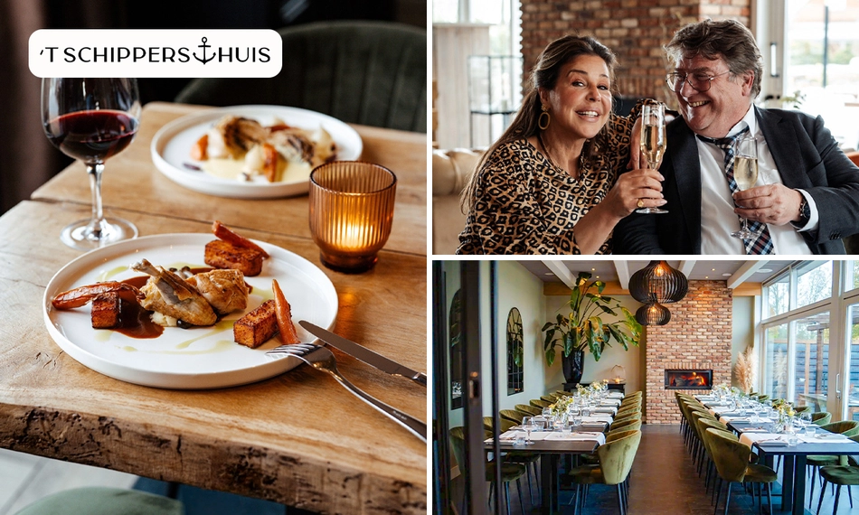 Geniet van een heerlijk 4-gangendiner van de chef op een prachtige locatie aan het water bij 't Schippershuis: een gezellige avond tafelen