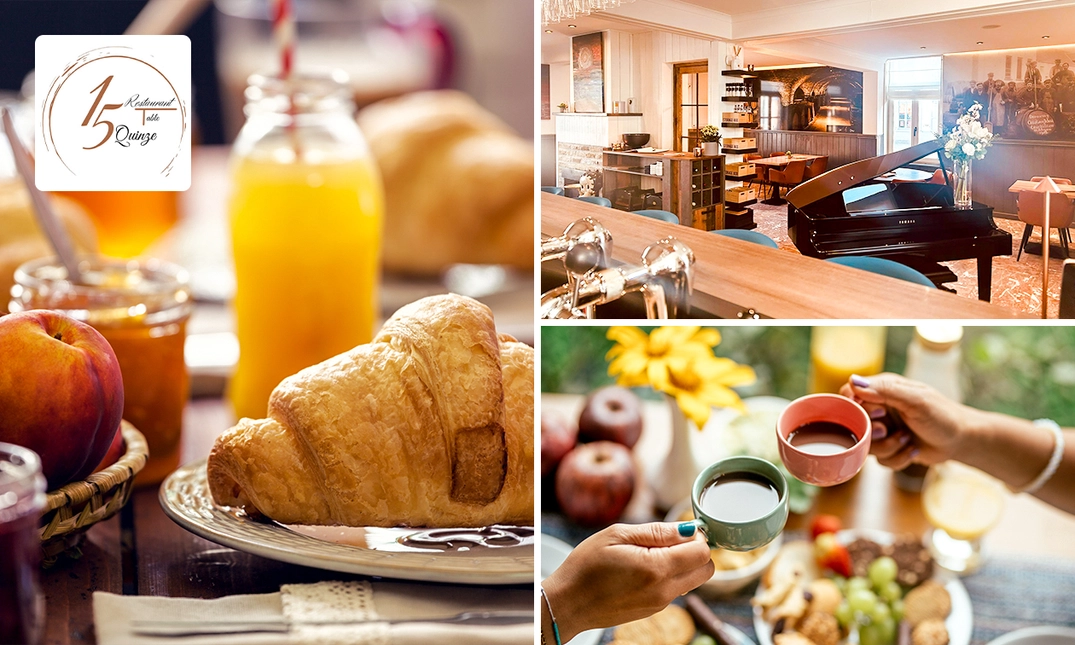 Luxe ontbijt bij Table Quinze: ga voor een fantastische start van je dag met een ruime selectie aan zalige ontbijtgerechten, een glas sinaasappelsap en een kannetje koffie of thee