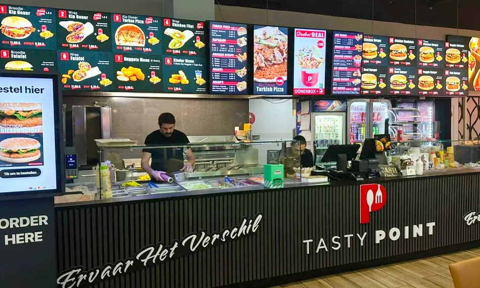 Stap binnen in een frisse, ruime en moderne zaak waar je in een prettige sfeer van je maaltijd geniet. Tasty Point is de perfecte locatie om even rustig te zitten en op te laden na een dagje shoppen. Het personeel zorgt ervoor dat je niets tekortkomt.