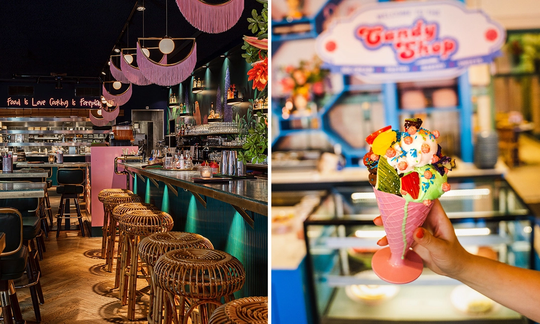 Als je The Streetfood Club binnenloopt, loop je de 'happy place' van de eigenaren binnen; het is een mix van luxe en street. Waar het kleurrijke, luxe interieur samensmelt met een laagdrempelige ontspannen sfeer op een unieke locatie.