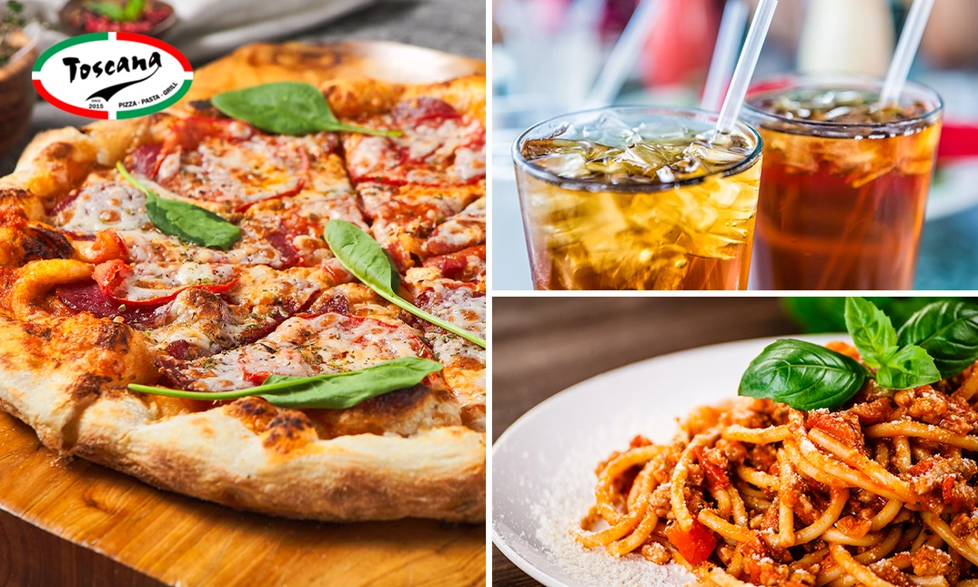 Geniet van een heerlijk Italiaans hoofdgerecht en verfrissend drankje naar keuze voor afhaal bij Toscana in Roosendaal: met keuze uit alle pizza's, calzones en pasta's, bereid met verse ingrediënten